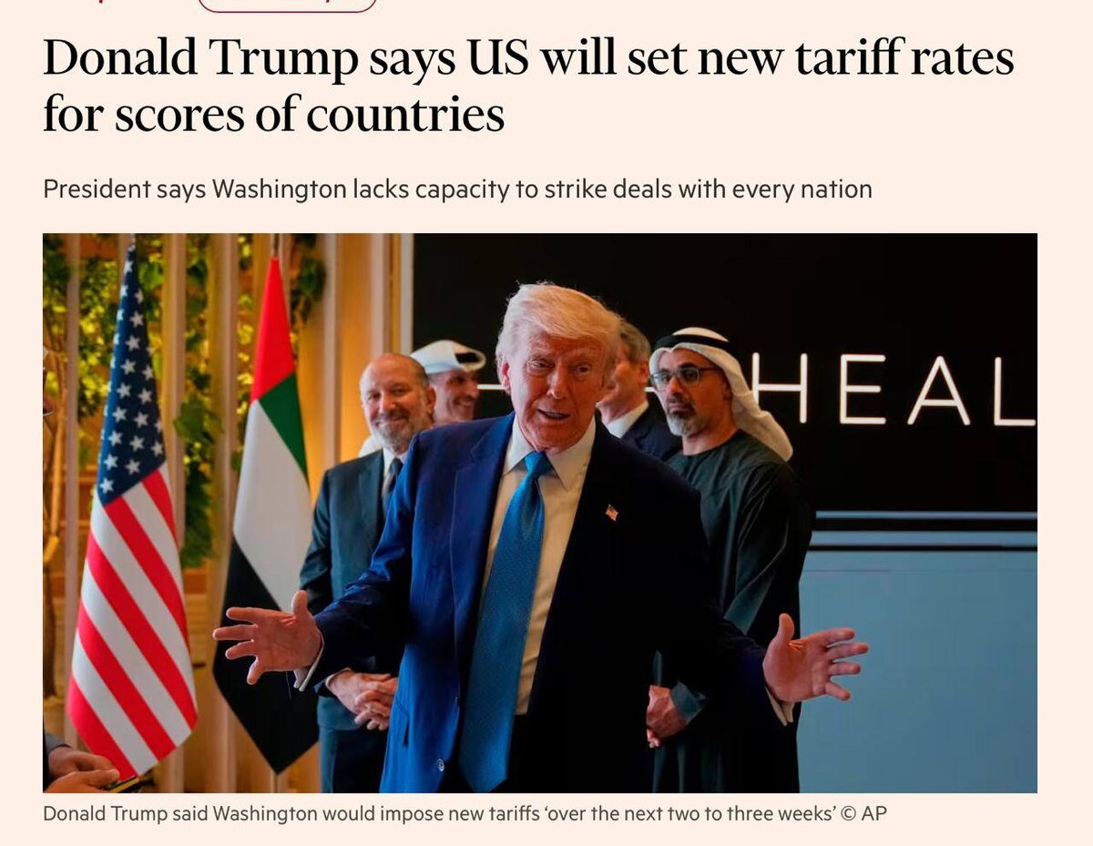 🙁Дональд Трамп объявил о готовящихся торговых ограничениях — в течение трёх недель могут быть введены новые тарифы для ряда стран.