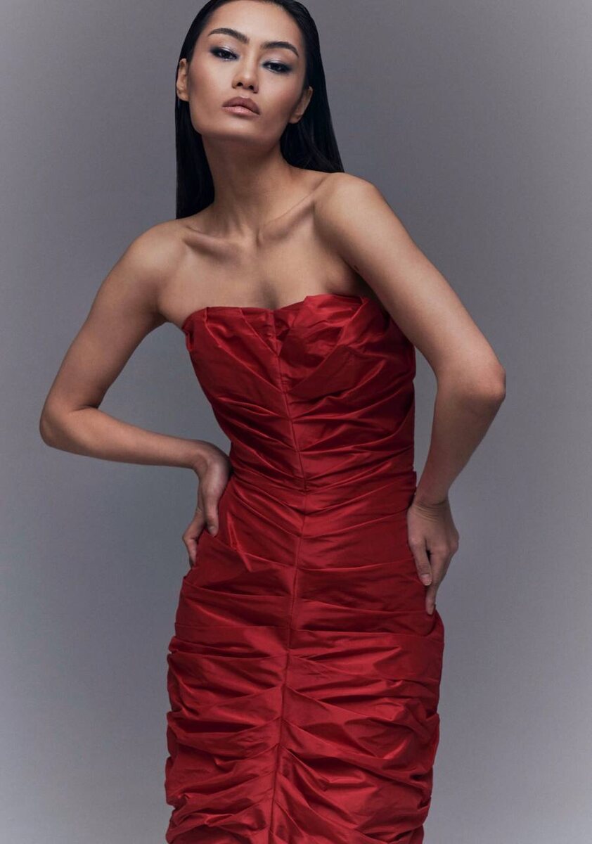 В складках платья Canach будто бы спрятаны наслоения всей жизни. Глубокий рубиновый оттенок, сияющая текстура и плотные драпировки по всей длине делают из любого силуэта греческую скульптуру. Бюстье на жёстком корсете подчёркивает плечи и ключицы, а вертикальная сборка визуально вытягивает фигуру. За такие чудеса просят чуть больше 400 000 рублей. Красота требует, знаете ли. #РазгонМода_ВещьДня