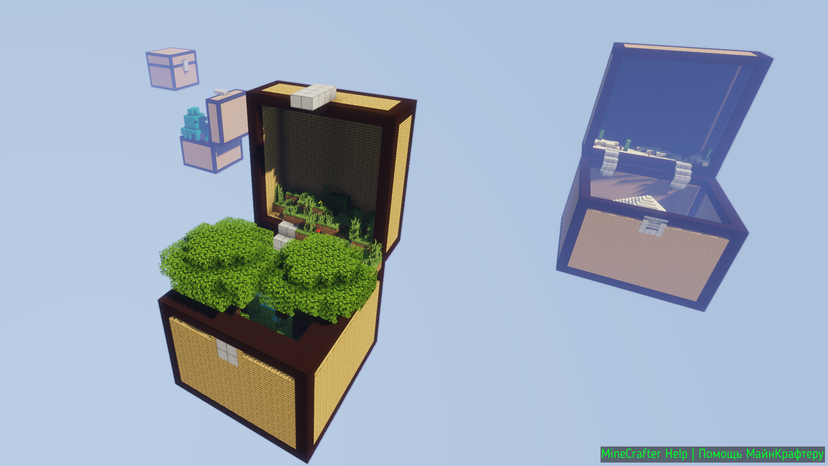 Тип карты: SkyBlock Представьте SkyBlock, но с невероятным креативным поворотом! В этой карте каждый парящий остров заключён в огромный Minecraft-сундук. ✨ Что вас ждёт: 🌍 Исследуйте этот удивительный мир, где выживание приобретает совершенно новые краски! 📥 Ссылка для скачивания карты