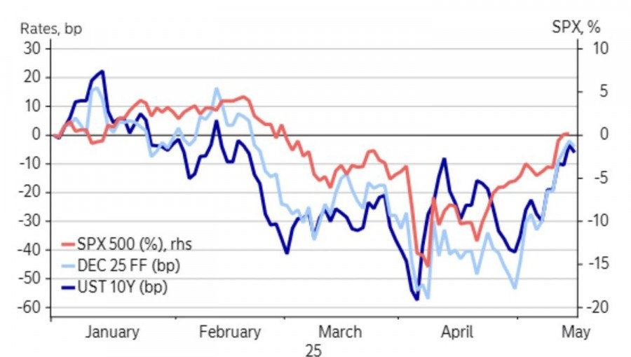 Все возвращается к началу. Лишь на экваторе мая американские фондовые индексы, доходность казначейских облигаций и рыночные ожидания по ставке по федеральным фондам вернулись на исходные позиции. Именно так они начинали 2025, однако тарифы Дональда Трампа погрузили рынок в хаос. Единственной, кому удалось сохранить хладнокровие, оказалась ФРС.