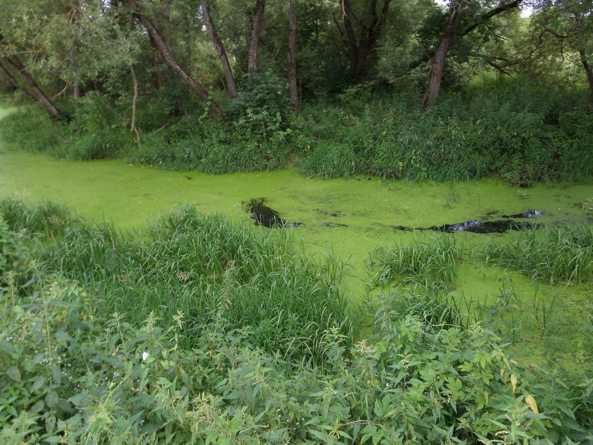 Первое что я почувствовал, подойдя к речушке это вонь. Запах прокисшей кухонной тряпки перемешанный еще с чем-то неприятным. Вода в реке была молочного цвета и сквозь нее местами виднелись причудливые колыхающиеся водоросли ядовито желтого цвета.