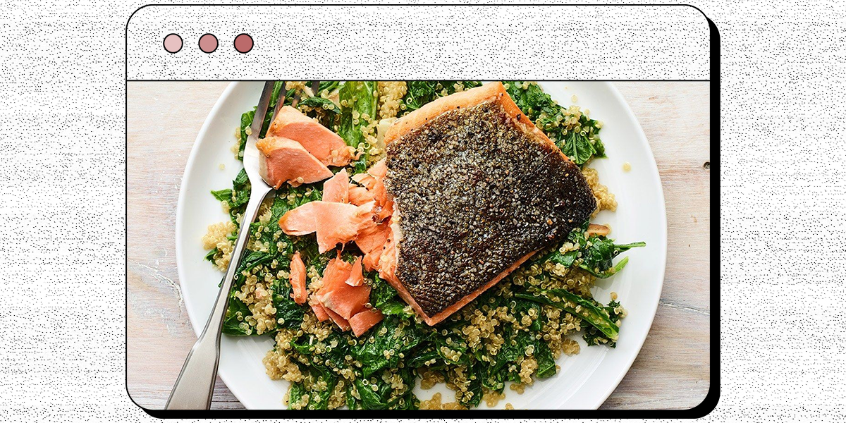 Подавай лосось на подушке из киноа с тушеным шпинатом.