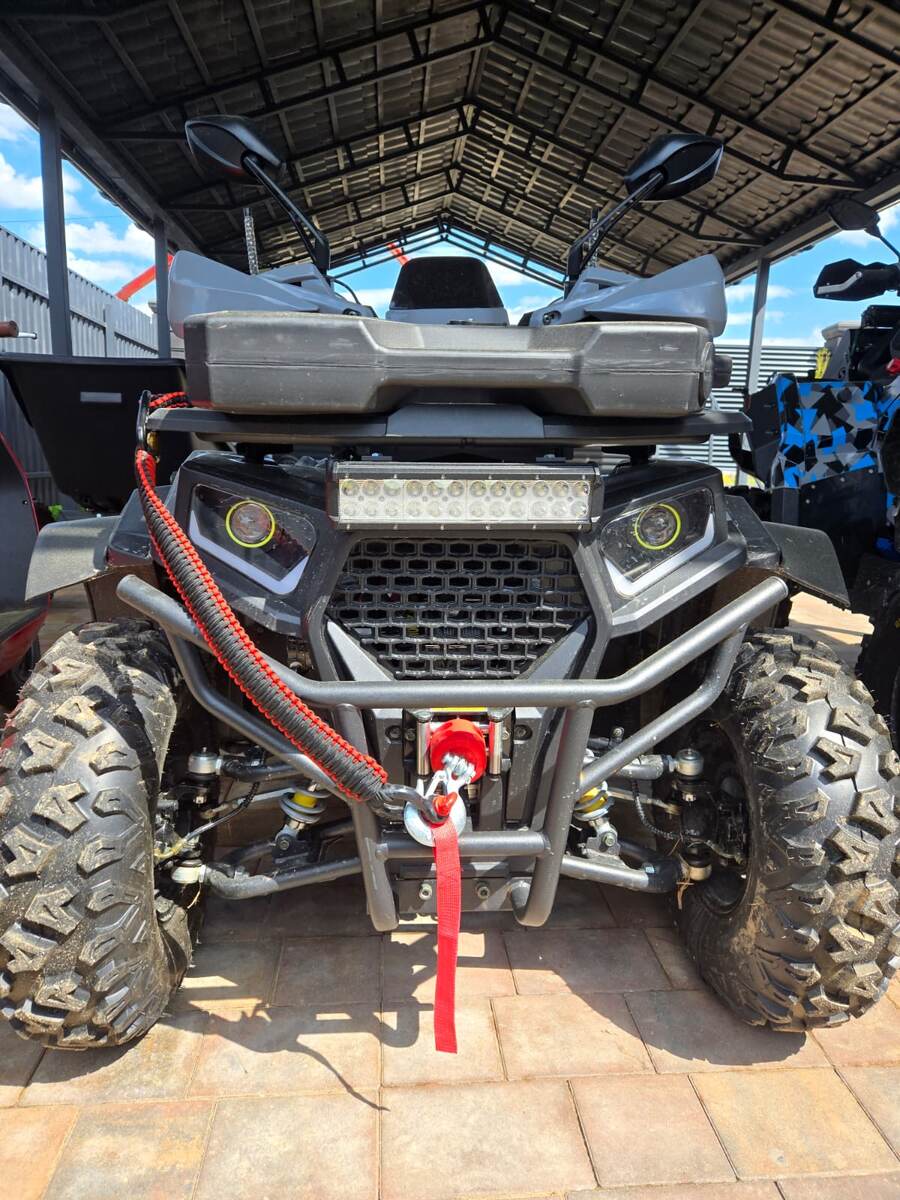 Трансмиссия - вариатор D-N-R. Привод на заднюю ось цепной. На задней оси стоит звезда которая снизу прикрыта трубчатой защитой. По КПП - при переводе селектора КПП, передача не включается сразу. Нужно либо "дать" не много газа, либо покачаться на квадроцикле вперед-назад и тогда происходит щелчок включения передачи. По работе вариатора есть замечание - подхват происходит при 2000+ оборотов. Т.е. холостые 1000-1200, жмем на газ до 2000+ и только тогда начинается движение. Касаемо приводной цепи - она вытягивается и провисает. Нужно следить за ее натяжкой, но, отдать должное тем кто конструировал, натяжка выполняется крайне просто при наличии комплекта ключей и болта/винта/шпильки м6-м8.
