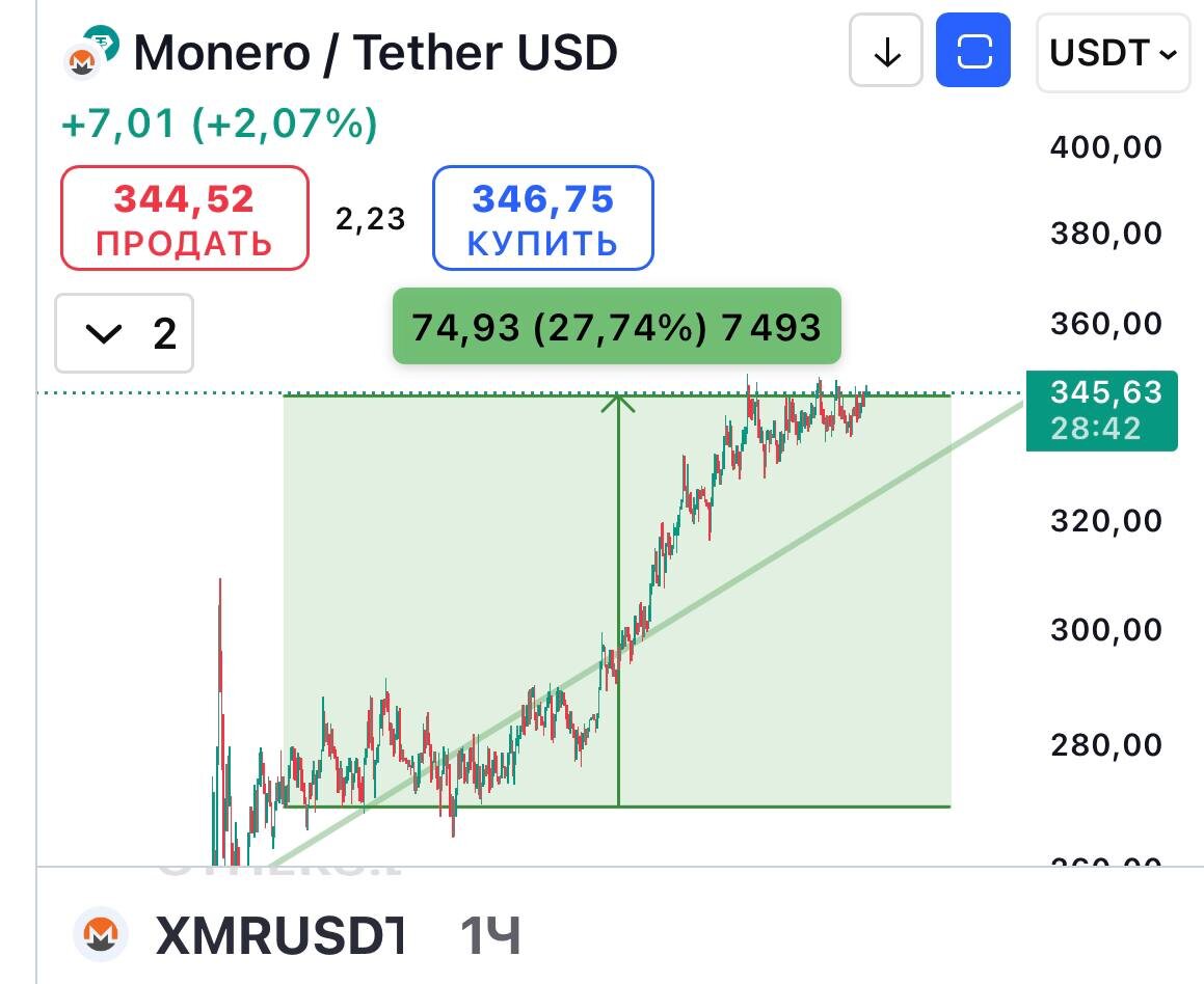💡 Идея по монете Monero $XMR , которую я публиковал здесь на прошлой неделе уже приносит +27% на споте!