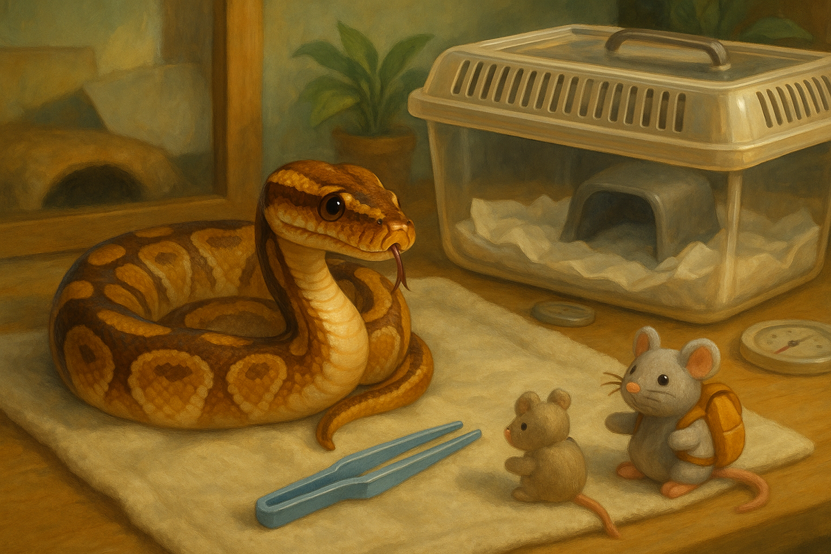 Ваша змея ведёт себя иначе — отказывается от еды, внезапно хрипит или появились необъяснимые припухлости? Время ехать к герпетологу. Но спешка без подготовки может только усугубить стресс питомца. В этой статье вы найдёте чёткий план подготовки: от сбора медицинской истории до безопасной транспортировки, чтобы визит к ветеринару прошёл гладко и без лишних переживаний. Прежде чем звонить в клинику, соберите все данные: ✍️ Даты и частоту кормления, весовые изменения за последние 3–6 месяцев. 📓 Когда появились первые признаки: хрипы, отказ от добычи, вялость или, наоборот, чрезмерная активность днём? 📆 Даты последних линек, случаи срыгивания, предыдущие визиты к герпетологу. Наличие этой информации позволит ветеринару быстрее понять, какой анализ провести и какие процедуры предложить. Комфорт и безопасность питона в дороге — ключ к минимизации стресса: – Жёсткий пластиковый бокс с вентиляционными отверстиями, размером не менее длины змеи. – Поместите в контейнер тёплую грелку или бутылк