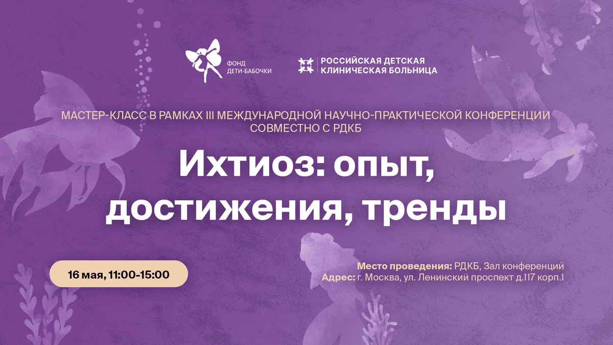 Ежегодно во всем мире май считается Месяцем осведомленности об ихтиозе — редком генетическом заболевании кожи. Фонд «Дети-бабочки» присоединяется к информационной кампании и организует третью Международную научно-практическую конференцию «Ихтиоз: опыт, достижения, тренды» в Москве. Экспертные обсуждения пройдут 16 и 17 мая. Задача конференции — повысить осведомленность медицинского сообщества о мультидисциплинарном подходе к лечению редкого генного дерматоза и рассказать пациентскому сообществу о правильном уходе за кожей при различных формах ихтиоза. Практическая часть программы включает мастер-классы и дискуссионные панели с экспертами. Отдельный блок посвящен пациентам и их семьям – ведущие специалисты ответят на их вопросы о заболевании. Первый день 16 мая пройдет на площадке Российской Детской Клинической Больницы (Ленинский проспект 117к1). Начало регистрации — в 11:00. В программе: трек для врачей и медицинских работников «Обмен опытом: лучшие практики в лечении ихтиоза», практи