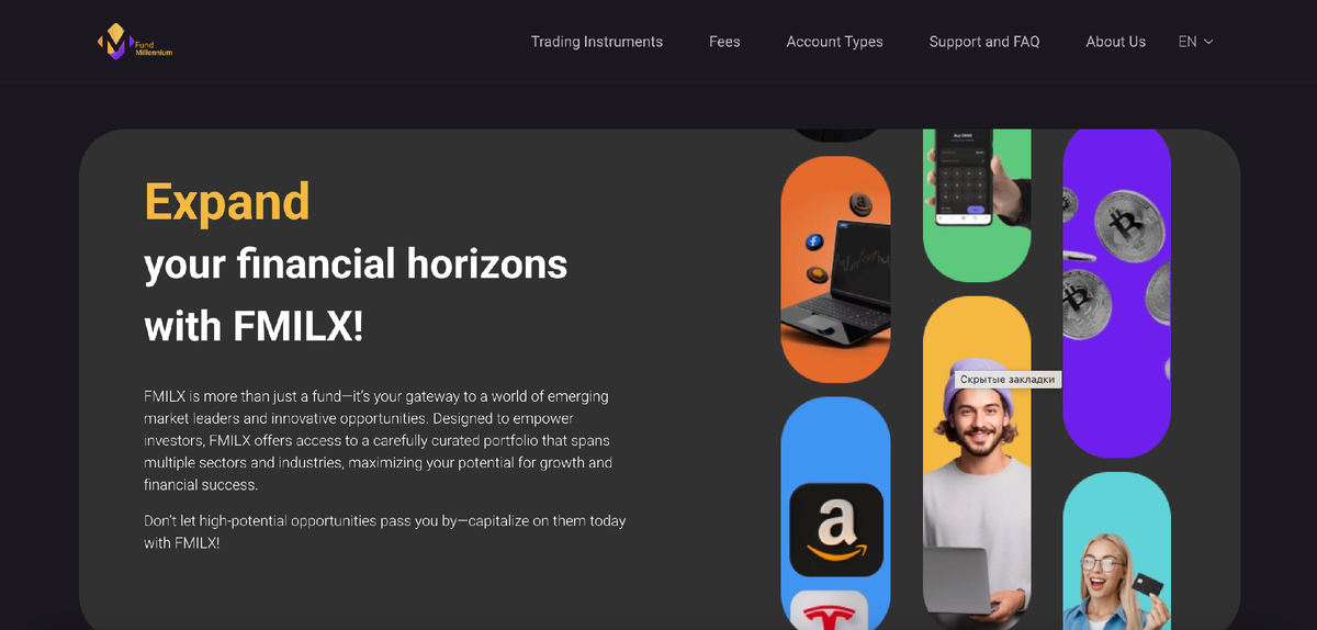 New-millennium-fund.net позиционирует себя как инвестиционная платформа, предлагающая своим пользователям возможность зарабатывать на различных финансовых рынках, таких как валютные пары, криптовалюты и акции. Сайт утверждает, что предоставляет клиентам доступ к инструментам для прибыльной торговли и обещает высокие доходы.