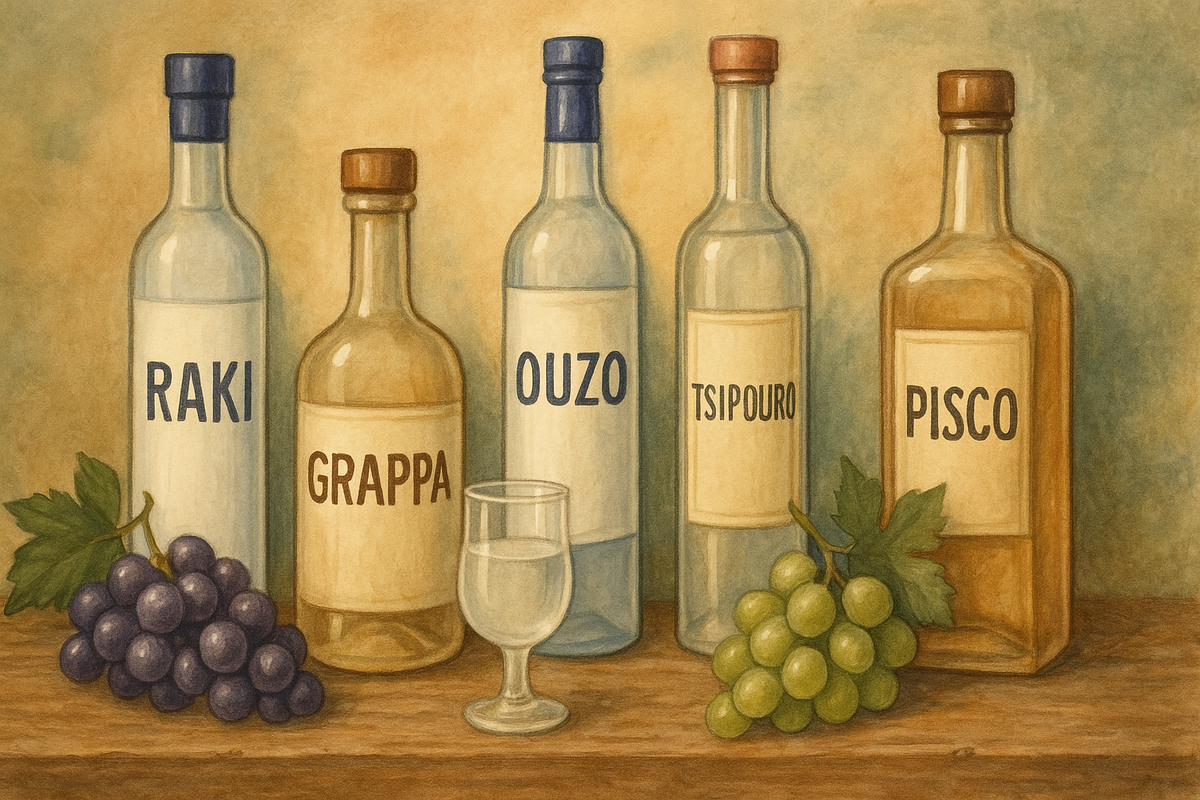 - Граппа (Италия) — та же виноградная мезга, только с итальянским шиком. Иногда мягкая, иногда бьёт как «Феррари» без тормозов.