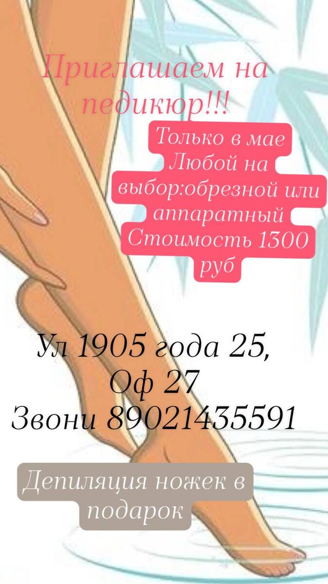 Торопитесь, скоро сезон открытой обуви. Уже пора!! У мастеров сезон полной загрузки, Записывайтесь скорее, пока еще осталось немного окошечек. у нас не так много времени летом, , когда можно прогулять ножки!!!!! Если за зиму ногточки изменили цвет, или появился онихолизис или неровности , деформация ногтевой пластинки на ногах, это все можно починить, изменить, сделать ваши ноготки идеальными. Звоните 8 902 143 55 91, все обсудим!!!