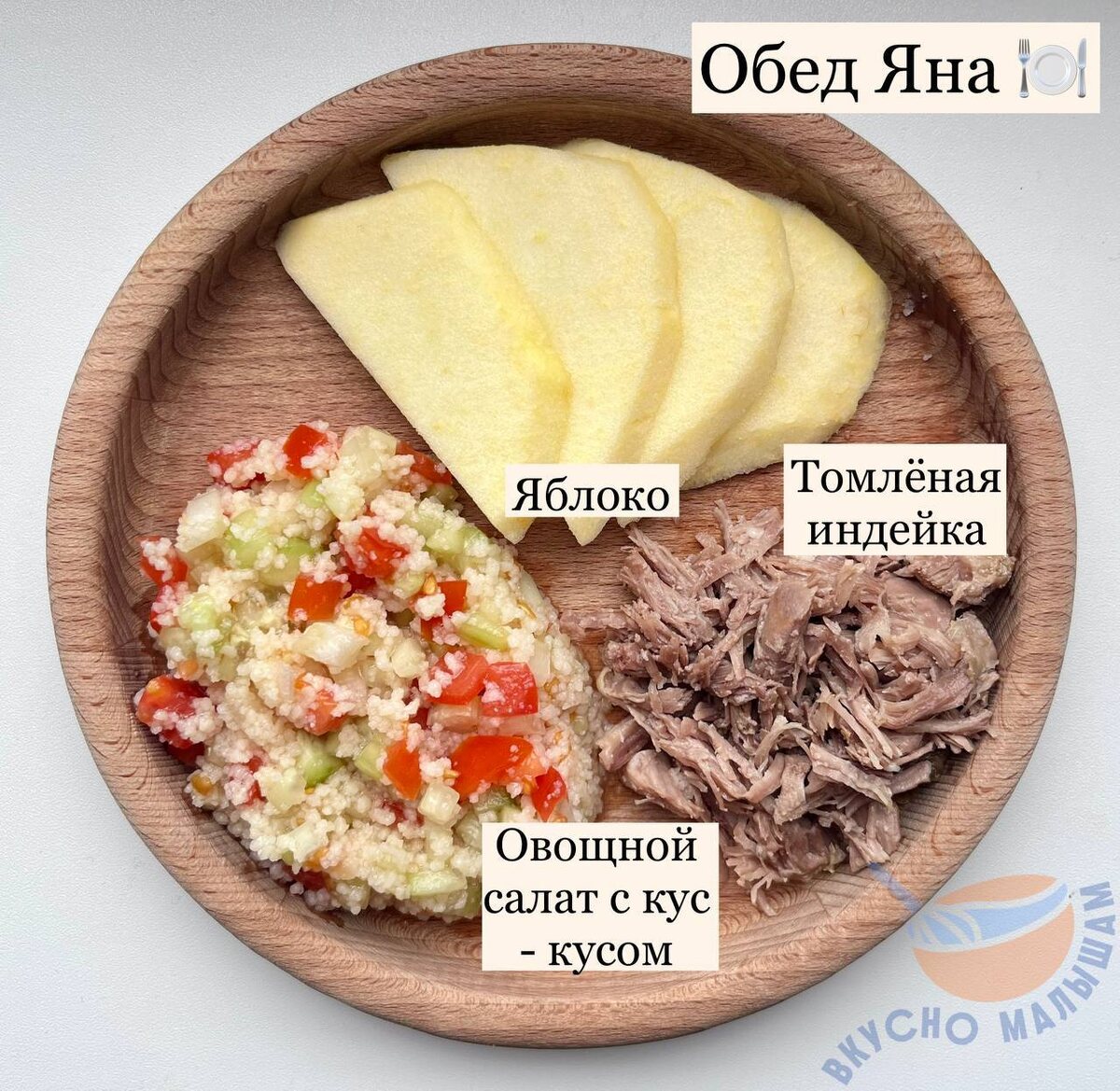 Рецепту можно посмотреть тут: 🥣 овощной салат с кус - кусом 🥣 томлёная индейка #тарелочки