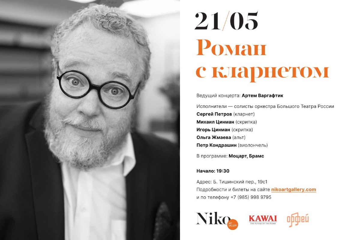 Роман с кларнетом в Галерее Нико В Галерее Нико состоится концерт рубрики «Артем Варгафтик представляет» -- «Роман с кларнетом». Исполнители – солисты оркестра Большого Театра России. https://www.classicalmusicnews.ru/anons/roman-s-klarnetom-v-galeree-niko/?utm_source=cmn_own&utm_medium=telegram