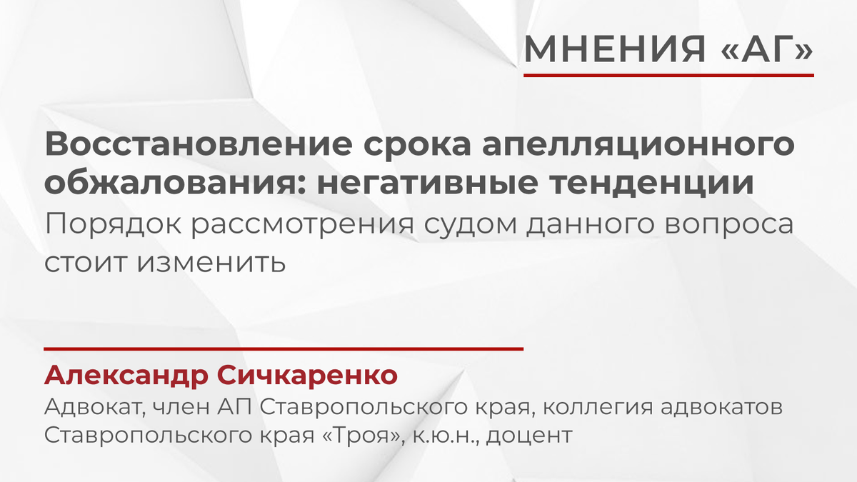 Мнения «АГ» // Восстановление срока апелляционного обжалования: негативные тенденции