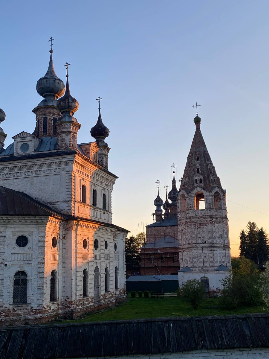 Во Владимирской области есть такой замечательный городок Юрьев-Польский. Я провела там значительную часть детства. С этими краями связано много приятных воспоминаний, теплых моментов. Потому этот город могу назвать своим местом силы. Пейзажи там восхитительные! Удивительно, но во время сборов в поездку (конечно же, набираю побольше красок и картонок) я поняла, что ни разу не пленэрила там. Представьте, какое упущение. Так что в первый день после приезда я разгоняла творческий аппетит, гуляя по городу. Утром следующего дня начался пленэрный забег. Решила, что буду рисовать примеченные места по пути к центру города. Рядом с домом, где живут мои родные, величаво стоит заброшенная колокольня. Издалека она кажется небольшой, неприметной, но подойдя к ней ближе, поражаешься ее масштабам. С этой работой я справилась за 2 часа. Рисовала темперой. Сейчас это тот материал, которым я могу полностью изобразить задуманное. Как и хотела, нарисовала загадочный Георгиевский собор. У него длинная, ин