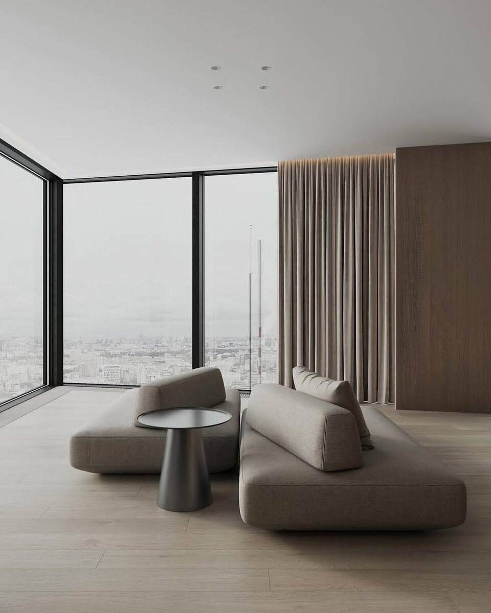 Первые ракурсы нашего нового проекта в одной из башен Capital Towers. Сердце квартиры - кухня-гостиная - ориентирована на две стороны. В зону кухни мы добавили удобный остров с посадочными местами. Перед окнами диван с передвижными спинками, чтобы в любое время суток с комфортом наслаждаться панорамой города. — Project: #pr_capital Year: 2025 Location: Moscow — +79037959696 Info@wowroom.ru #wowroomdesign —