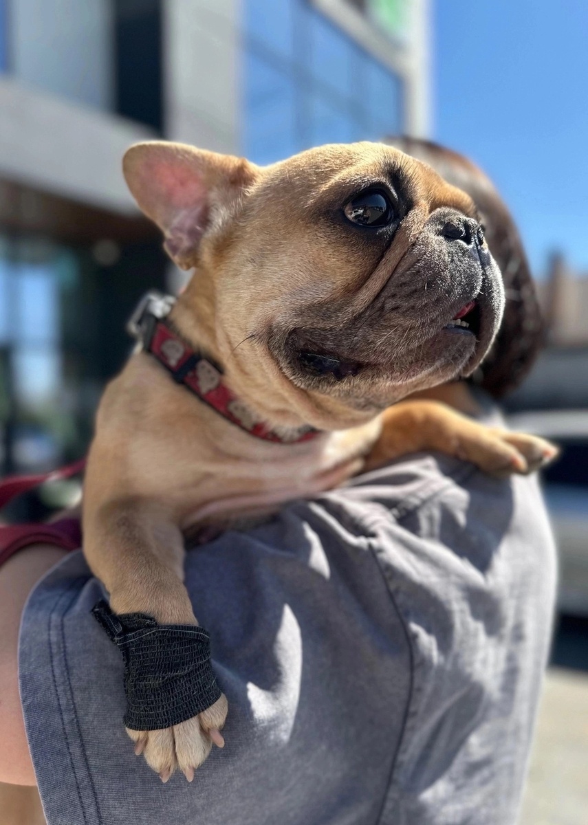 Выгул нужно наладить, так как бульдетка его еще плохо освоила!