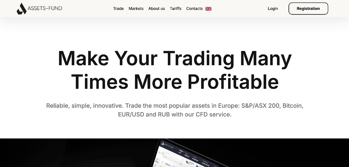 На главных страницах сайтов trade.assets-fund.com и assets-fund.com пользователи могут встретить следующие заманчивые предложения: