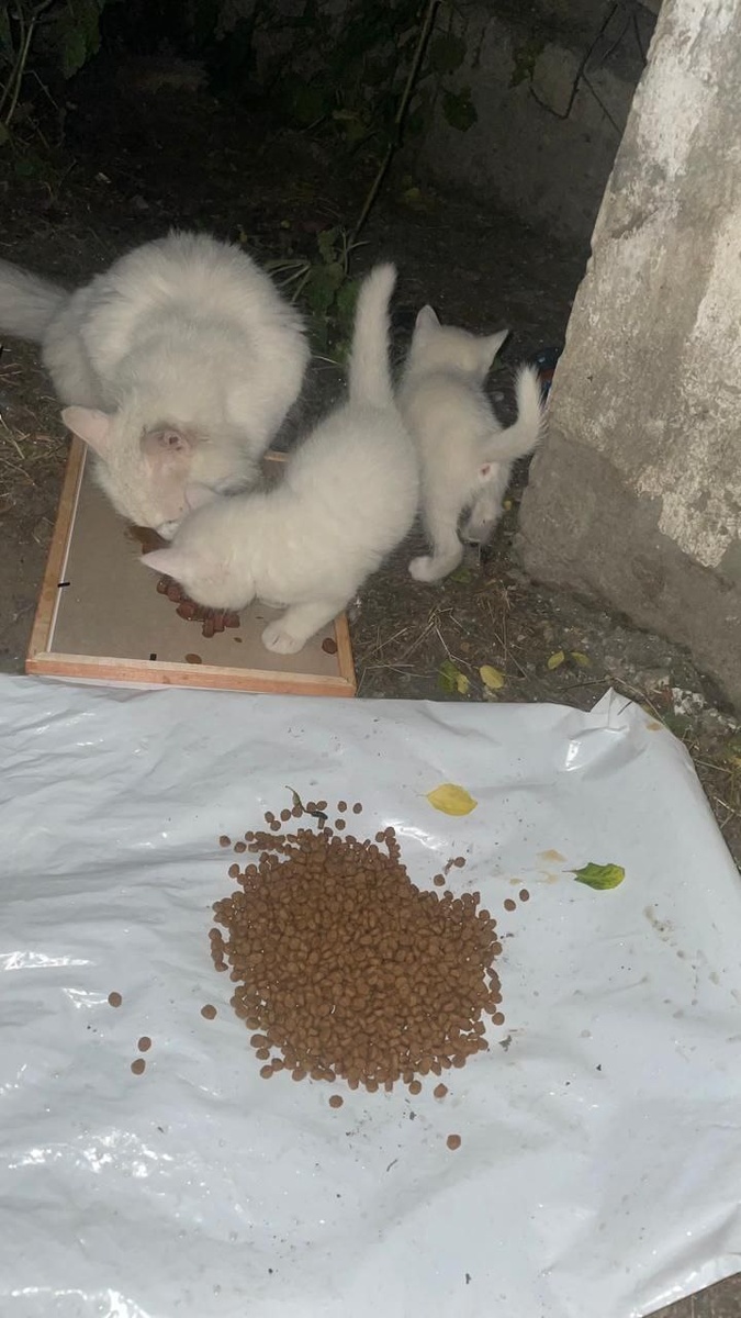 Пока они живы! МОСКВА И МО . Привезем кто откликнется на них! Срочно поиск Куратора ! Срочно нужно забирать с той местности. Сегодня нападение собак отбили на эту семью! Белоснежные котята с мамкой на улице. Никто по местности взять их не может переправляем в Москву расходы берут на себя волонтеры.