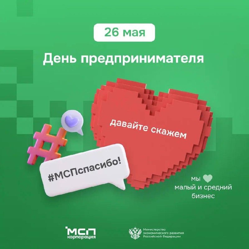 26 мая, в День российского предпринимательства, в стране проходит всероссийская акция благодарности малому и среднему бизнесу — #МСПспасибо.