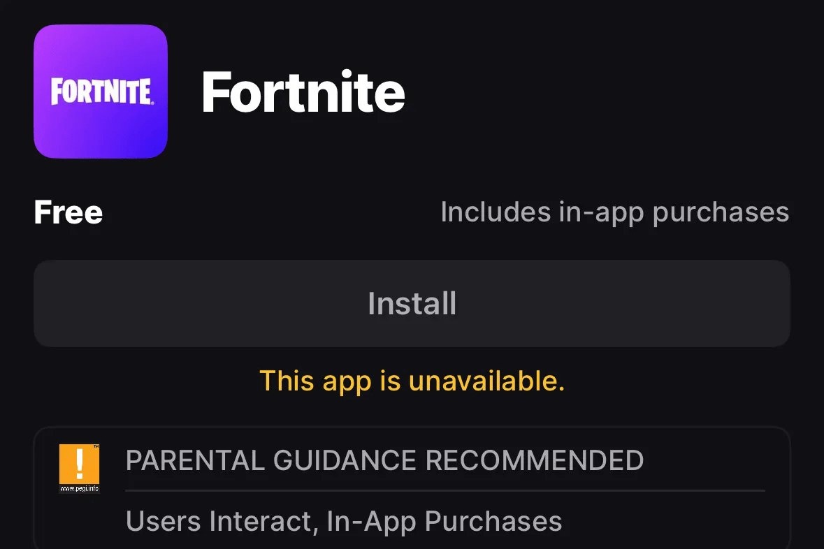 Apple отклонила заявку на возвращение Fortnite в американский App Store. Теперь игра недоступна по всему миру, даже в альтернативном магазине Epic Games Store, который запустился в ЕС в августе 2024 года vc.ru/apple/1990391