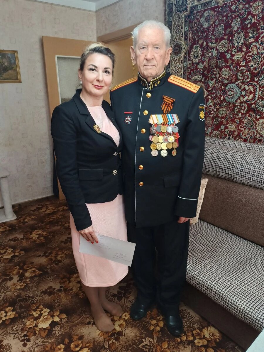 Фронтовика навестила секретарь Ленинского местного отделения «Единой России» Светлана Мудрецова. Недавно Николай Алексеевич вернулся из Москвы, где исполнил свою мечту — впервые в жизни побывал на главном Параде Победы, прошедшем на Красной площади. Ветеран поделился незабываемыми впечатлениями и рассказал о событиях Великой Отечественной войны. В ноябре 1944 года Николая Алексеевича призвали в армию и отправили на обучение в снайперскую школу. Он был замечательным стрелком и воевал против бандеровцев на западной Украине. День Победы встретил в Дрогобыче. С декабря 1945 года Николай Токарев служил в Черноморском флоте, в Севастополе. В 1978 году ушел в запас. Сейчас Николаю Алексеевичу 97 лет, у него есть правнук и три правнучки. Он рассказал, что на Параде ему больше всего запомнился проход войск, мощная боевая техника. И очень впечатлила теплая встреча в Москве. Светлана Мудрецова пожелала фронтовику крепкого здоровья и бодрости духа. «Даже просто общаться и быть знакомым с т