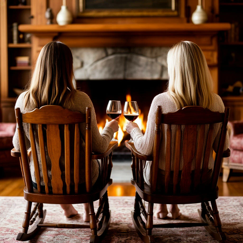 Дрова в камине слегка потрескивали, а комната наполнилась теплом. Анна с Марией сидели рядом с ним в небольших креслах-качалках и медленно попивали вино.