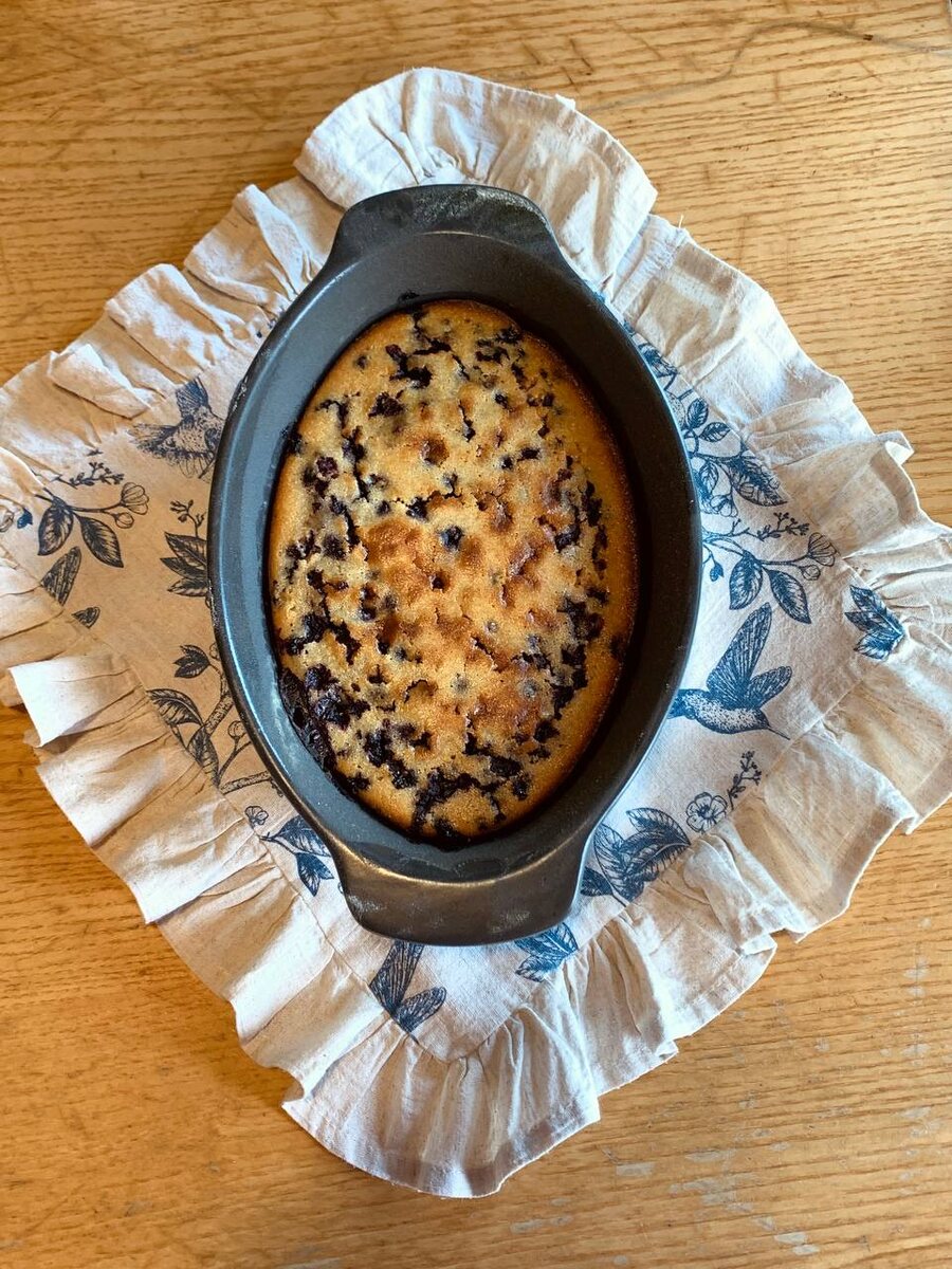 Манник с черникой 🫐 200 г кефира 🫐 160 г манки 🫐 100 г сахара 🫐 55 г яйцо 🫐 50 г сливочного масла 🫐 1 г соли 🫐 5 г разрыхлителя 🫐 1 г ванилина 🫐 200 г черники (можно из морозилки) Технология: Поставить духовку на разогрев 180 градусов. Смешать кефир с манкой до полного её увлажнения и оставить на 15 минут. Масло порезать на маленькие кусочки и оставить размягчаться при комнатной температуре. Внести сахар, соль, разрыхлитель и ванилин, взбивать в миксере до однородности, внести яйцо, взбить до полного распределения, внести масло и взбивать до растворения масла. Внести ягоды и размешать до равномерного распределения. Форму для выпекания смазать сливочным маслом и припылить мукой. Выложить тесто в форму и поставить запекать на 50 минут, через 40 минут включить верхний тэн для зарумянивания верхней корочки.