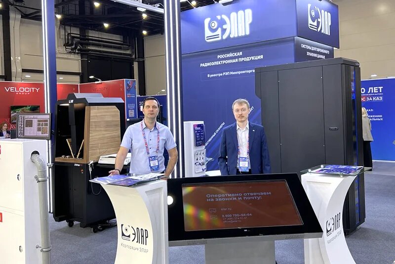На юбилейном XX Всероссийском Форуме-выставке «ГОСЗАКАЗ», прошедшем в Санкт-Петербурге, корпорация ЭЛАР презентовала новое поколение планетарных сканеров и роботизированных комплексов долговременного хранения данных ЭЛАР Робот НСМ, работающих на основе оптических носителей информации. В условиях импортозамещения и наличия всевозможных угроз безопасности, крайне востребованы технологии цифровизации на базе российской радиоэлектронной продукции, обеспечивающей выполнение государственного заказа и суверенитет используемых решений. Корпорация ЭЛАР является крупнейшим в России производителем отечественного оборудования для оцифровки документов и создания электронных архивов, разработчиком систем на базе технологий искусственного интеллекта и программного обеспечения в области управления документами и данными. В числе представленной российской радиоэлектроники —планетарные сканеры для оцифровки сшитых архивных материалов семейства ЭларСкан и ПланСкан, автоматический сканер ЭЛАРобот Р-2, позв