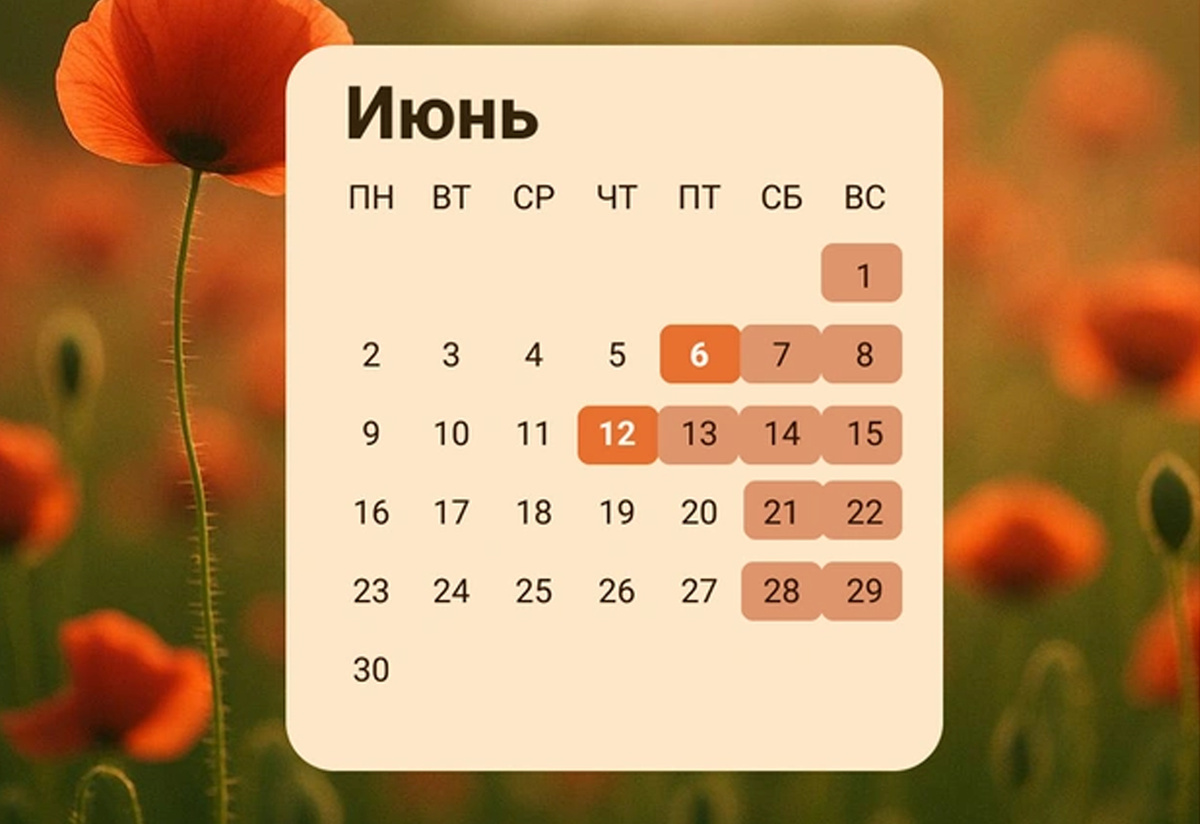 А в связи с Днём России, который отмечается в стране 12 июня, нас ждут сразу четыре выходных подряд. По календарю это четверг. В целях рационального использования работниками выходных и нерабочих праздничных дней Постановлением Правительства РФ от 04.10.2024 № 1335 выходной день с субботы 8 марта перенесён на пятницу 13 июня. Таким образом, сотрудники, занятые на пятидневке, будут отдыхать 12, 13, 14 и 15 июня, у кого «шестидневка» – 12, 13 и 15 июня. Среда 11 июня будет сокращённой на час.