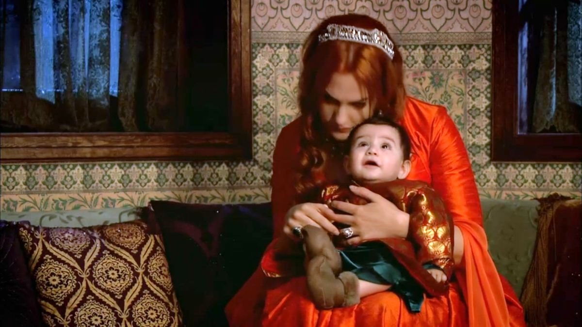Передав сына в руки Гюльнихаль, Сулейман остаётся наблюдать за ней. Хюррем это не нравится. Она вслух замечает, что Султан даже отвернулся.