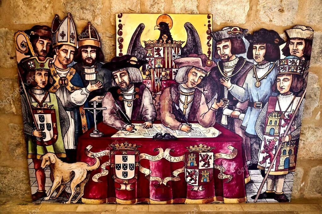 Наблюдая за несколько сюрреалистическим процессом очередного "чаепития у Безумного Шляпника" 🤪, вспомним исторические примеры переговоров, которые привели к неожиданным результатам и постараемся извлечь пользу для себя из уроков прошлого (впрочем, как обычно🧐). Тордесильясский договор (1494 год). После открытия Колумбом "Западной Индии" в 1493 году две морские державы, пионеры великих географических открытий - Испания и Португалия - сошлись в жесткой схватке за право владения новыми землями, и в результате решили поделить мир примерно пополам. Подписав Тордесильясский договор, они прочертили линию через весь Атлантический океан на карте примерно по 49-му меридиану, согласовав принадлежность территорий к западу от этой линии к Арагону и Кастилии (Испании), а к востоку — Португалии. Для того, чтобы разрешить спор, стороны призвали римского папу Александра VI Борджиа (как раз уроженца арагонской Валенсии 😉), поскольку с середины XV века римские папы в своих буллах закрепляли новые земл