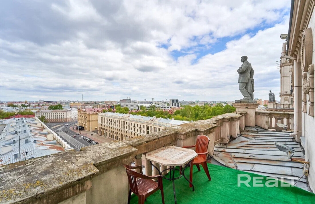 Комплекс «Ворота Минска» напротив вокзала снаружи наверняка видели все минчане. На одном из ярусов башен можно рассмотреть по четыре скульптуры — солдата, рабочего, колхозницы и инженера. Высота каждой — три с половиной метра. А как такие скульптуры выглядят с необычного ракурса — не для проходящих мимо минчан, а для жителей дома? Это можно рассмотреть на фотографиях одной из квартир в башне на Кирова, которая сдается на Realt на сутки. Это дом на Кирова, 1, то есть та башня, что находится слева, если стоять лицом к Воротам Минска. Башни в стиле классицизма построили в 1953 году по проекту ленинградского архитектора Бориса Рубаненко. Сегодня на левой башне можно увидеть самые большие часы, диаметр циферблата которых — больше 3,5 метра, а длина минутной стрелки – 1,69 метра. — Эти часы были созданы больше ста лет назад в Германии, а в Беларусь попали в качестве военного трофея после Великой Отечественной войны, — рассказывал журналистам экскурсовод, кандидат исторических наук Сергей Б