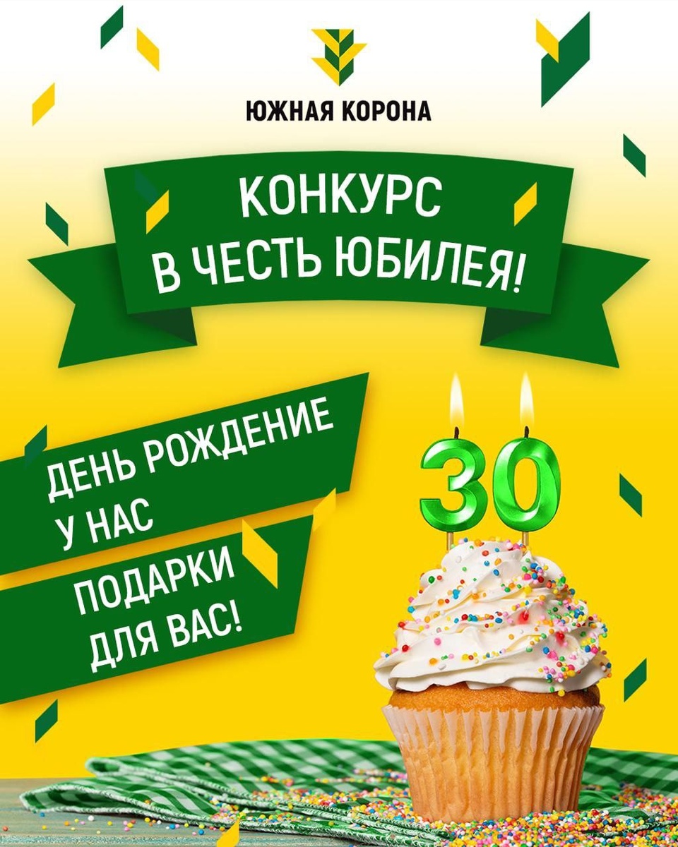 🎉 Дорогие друзья! В честь 30-ти летнего юбилея «Южной Короны» 🎂 мы решили порадовать вас розыгрышем подарков с нашим логотипом! 1. Банный набор 2. Термо-рюкзак 3. Жилет брендированный Чтобы принять участие в РОЗЫГРЫШЕ, нужно: ✅Быть подписанным на наш канал; 📱Опубликовать в комментариях под этим постом поздравления или пожелания в адрес нашей компании в любом желаемом формате. 30 мая 2025 года мнением жюри, которым выступят сотрудники нашей компании, будут выбраны победители розыгрыша🎉 Всем удачи!!!💛💚