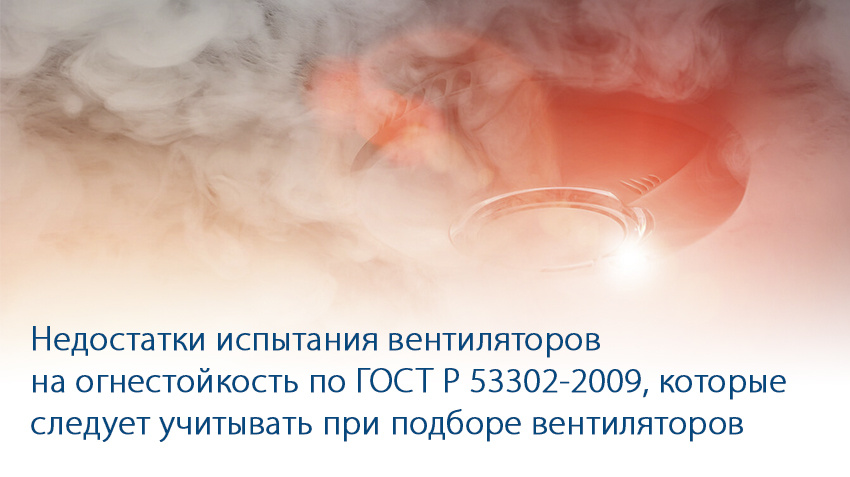В 1986 году нормативное требование по механическому удалению дыма было распространено на все многоэтажные здания высотой более 30 м с конкретизацией типа вентиляторов, разрешенных для использования: «Для систем противодымной вытяжной вентиляции следует предусматривать: а) установку радиальных вентиляторов с электродвигателями на одном валу в исполнении, соответствующем категории обслуживаемого помещения, без мягких вставок» [2]. Это требования создало неопределенность с возможностью его реализации радиальными вентиляторами с неподтвержденной огнестойкостью. Из-за отсутствия методики определения огнестойкости вентиляторов на первых порах приходилось с этим мириться, устанавливая обычные радиальные вентиляторы со спиральным корпусом.
