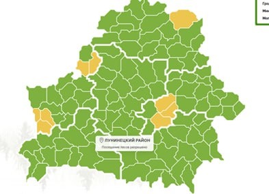 Карта запретов и ограничений на посещение лесов в районах Республики Беларусь - Минлесхоз