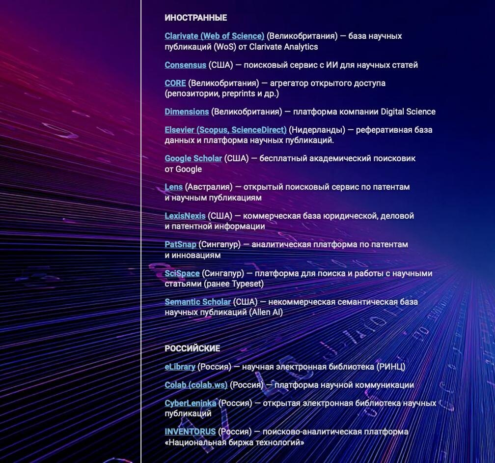 Платформы научно-технической разведки из исследования Руссофта. Я бы добавил к ним: