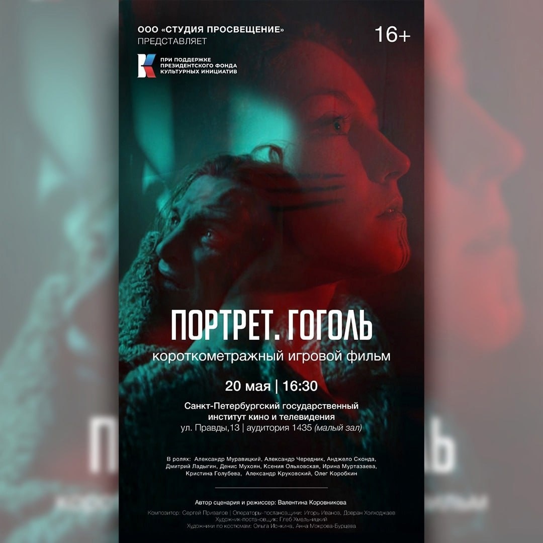 🎬Премьерный показ короткометражного игрового фильма «Портрет. Гоголь» В основе фильма – классическая петербургская повесть Н.В. Гоголя «Портрет», переосмысленная в современном ключе. Мистическая история про талантливого, но нищего и невостребованного художника Чарткова, которому предстоит выдержать искушение перед тремя смертными грехами: жадность, похоть и гордыня. В центре фильма вопрос о настоящем значении искусства и о том, какую цену готов заплатить человек за успех?! 💫Проект запущен как площадка для старта начинающих кинематографистов Санкт-Петербурга – выпускников творческих ВУЗов. Проект создан в рамках гранта Президентского фонда культурных инициатив. Над фильмом работали: 📽Автор сценария и режиссер – Валентина Коровникова, сценарист, режиссер игровых, документальных фильмов, сериалов. Призер более 20 российских и международных кинофестивалей. 🎭Исполнитель роли Чарткова - Александр Муравицкий. В ролях артисты театра «Балтийский дом» - Александр Чередник, Дмитрий Ладыгин