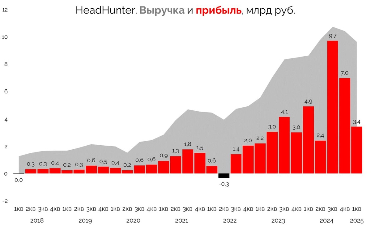 🔖 Ожидаемо слабый отчет за I кв. 2025 г. Охотника за головами Да, все и так понимают, что в текущих условиях Хэдхантеру совсем не сладко. Однако менеджмент сегодня порадовал инвесторов желанием платить дивы. Забываем про рост, но получаем приличную дивдоходность? 📊 Ключевые результаты из отчета за I кв. — Общее количество клиентов снизилось на 11,7% г/г. Однако средний чек продолжил рост (крупные +9,3% и малые +19,5%). — Выручка прибавила 11,7% (до 9,6 млрд руб.). Однако расходы росли быстрее. Скор. чистая прибыль снизилась на 14% — до 4,3 млрд руб. (именно из нее платят дивы). Теперь к более интересным моментам: 🔴С 2025 года компания планирует выплачивать дивиденды два раза в год. Ближайший дивиденд может быть на уровне 200 руб. — промежуточные за I полугодие. Их можем увидеть уже в III кв. 🔴Свободный денежный поток компании вырос на 36%. Часть денег компания направила на снижение долговой нагрузки. 🔴Выручка сегмента HR-Tech выросла в 2,8 раза — до 528 млн руб., а скор. у