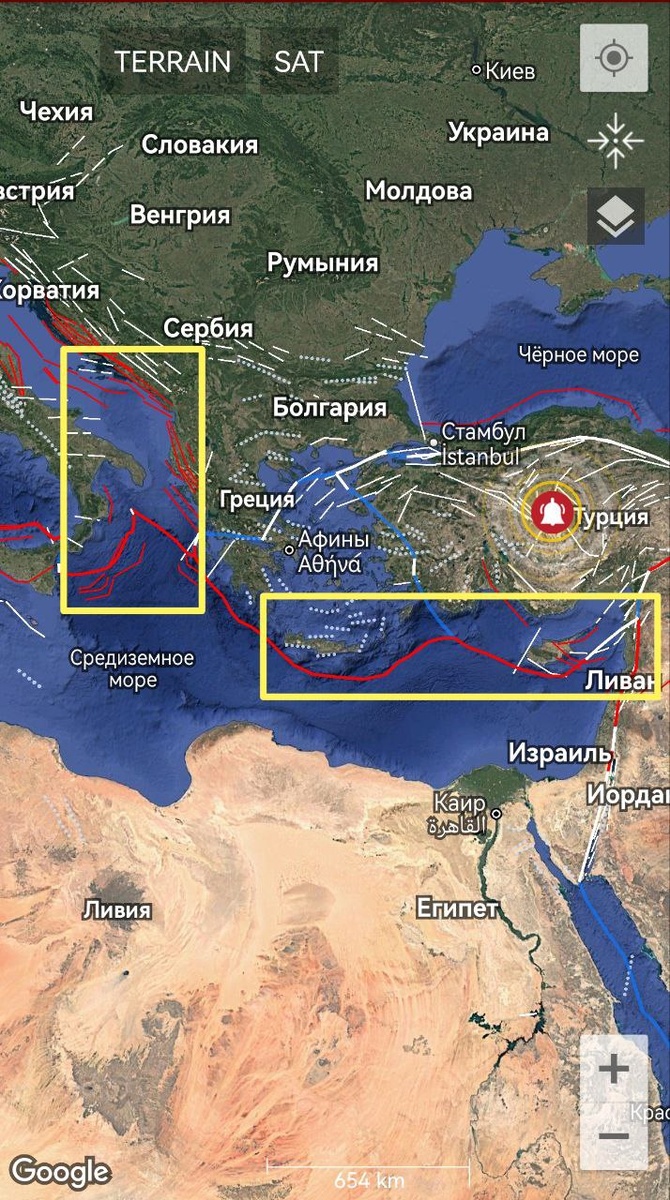 В ответ на пост По Еврозоне ситуация накаляется еще больше. По-прежнему на М7 трассируется зона Крит-Кипр, а также сформировался второй ОСТИ на М6-7 между Грецией, Италией и Черногорией. В течение 9 дней возможно сильное землетрясение по данным зонам. ==== In the Eurozone, the situation is heating up even more. The Crete-Cyprus zone is still being traced for the M7 event, and a second CSTI has also formed for the M6-7 between Greece, Italy and Montenegro. A strong earthquake is possible in these areas within 9 days.