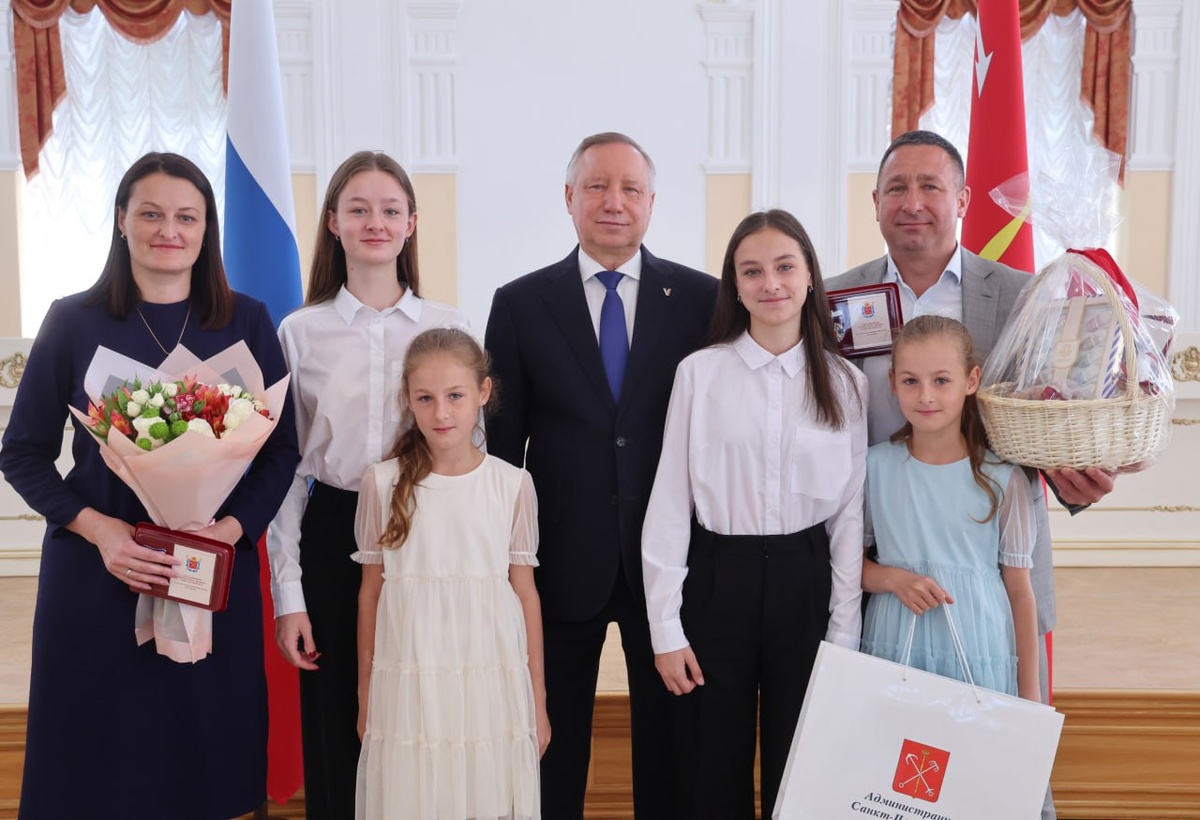 Губернатор Санкт-Петербурга Александр Беглов вручил знак к почётному званию Санкт-Петербурга «За заслуги в воспитании детей» III степени семье Ульяновых из Красногвардейского района. Торжественная церемония награждения проходила сегодня в Смольном. — Самое главное — сделать так, чтобы у детей все было, чтобы они хорошо учились, радовали родителей, любили наше Отечество, были патриотами нашей великой страны. Город делает всё, чтобы поддержать тех, кто растит достойную смену. На 1 января 2025 года в Петербурге насчитывалось почти 76 тысяч многодетных семей. С каждым годом их число увеличивается, — отметил губернатор города. Благодаря решению главы города продолжается расширение мер поддержки семей с детьми. Напомним, что с 2024 года все детские сады стали бесплатными, а материнский капитал сделали не только на трёх, но и на всех последующих детей.