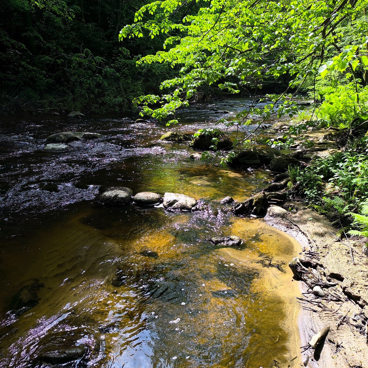Находится рядом с форелевыми реками и не сгонять еще раз я не мог. Тем более, что результат первой поездки был скромен: лишь одна рыбка и несколько сходов и контактов. Напарник с авто в этот день не мог, и я решаю ехать на такси. За форелью... Дожили ) Вылезаю на точке и сразу понимаю, что связи тут нет. Ладно, как выбираться – решу вечером. С собой 6 блинчиков с мясом и 1.5 литра воды, потопали... Река меньше первой, мельче, чаще петляет. Красивый цветущий майский лес. Поляны цветов и очень характерные корни деревьев, уходящие в воду. Через некоторое время понимаю, что я тут не один - в пяти метрах от меня сидит молодой лис, совсем непугливый. Бегал вокруг какое-то время, потом исчез. На песке следы косуль, лис и еще какие-то покрупнее – волк? А рыбка не клюет. Вдруг поклевка и мимо. Уже веселее. Еще одна и сход. На одном тихом повороте вижу кормящуюся рыбу, но не берет. Может елец. Чуть выше ловлю пару форелек на вертушку. Снова ставлю воблер и еще одна. Рыба стоит на хорошей струе,