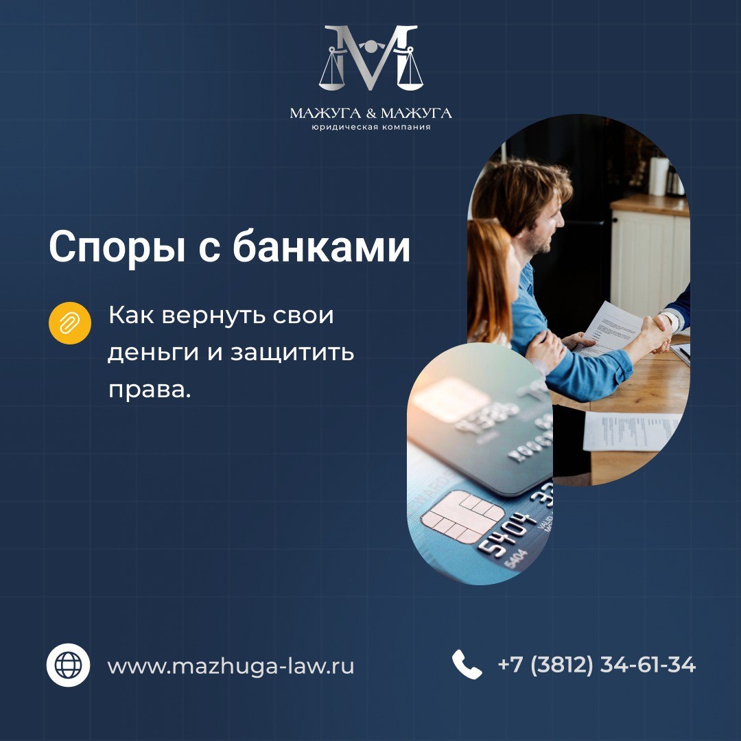 Многие сталкиваются с навязанными кредитами, страховками или комиссиями. Но это можно оспорить! Действуйте грамотно: Шаг 1: Изучите договор Проверьте, нет ли в нём незаконных комиссий (за открытие счёта, обслуживание). Если их не обсуждали при подписании — это нарушение ст. 16 Закона «О защите прав потребителей». Напишите претензию в банк с требованием отменить их. 💡 Банк обязан вернуть деньги, если комиссии не были согласованы. Шаг 2: Реструктуризация долга Если платить тяжело, подайте заявление на реструктуризацию. Банк обязан рассмотреть его за 30 дней (правила ЦБ РФ). Шаг 3: Идите в суд Если банк игнорирует претензии, суд — ваш козырь. 70% дел о навязанных услугах выигрывают клиенты. 💪 Не сдавайтесь!Сохраняйте все документы и переписки. Если сложно — обращайтесь к юристам. 🌟 Закон на вашей стороне, если вы готовы бороться. Звоните: +7 (995) 127-83-12 Или оставьте заявку на сайте: mazhuga-law.ru