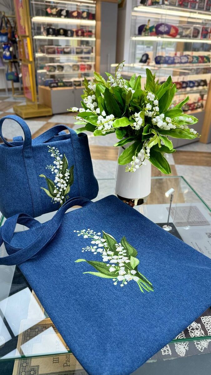 Нежная деталь: изящная вышивка ландышей добавляет сумке женственности и превращает её в самостоятельный акцент образа.