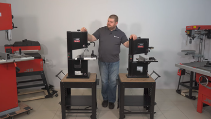 Привет, друзья! Сегодня мы решили сравнить между собой две ленточнопильные машины от бренда JIB — модели BS0902 и BS1001. Обе этих станка построены на одной архитектуре: та же компоновка, тот же принцип работы, те же элементы управления. Но масштаб — разный. Один — младший, компактный, лёгкий. Второй — солиднее, массивнее, с серьёзным запасом по мощности. Разберёмся, что у них общего, а где кроются важные отличия, которые стоит учитывать при выборе. BS0902 весит всего 18,5 кг. Это делает его невероятно удобным в плане мобильности: можно легко переставить, поднять, взять с собой на объект. Он отлично подойдёт для гаража, домашней мастерской, выездной работы. BS1001 — почти вдвое тяжелее, его вес составляет 36 кг. Это уже стационарный вариант, предназначенный для серьёзной работы, где важна стабильность и точность. Хотя, при установке на мобильную треногу, он тоже спокойно перемещается по цеху. С увеличением габаритов растёт и мощность. У BS0902 установлен двигатель на 200 Вт — вполне д