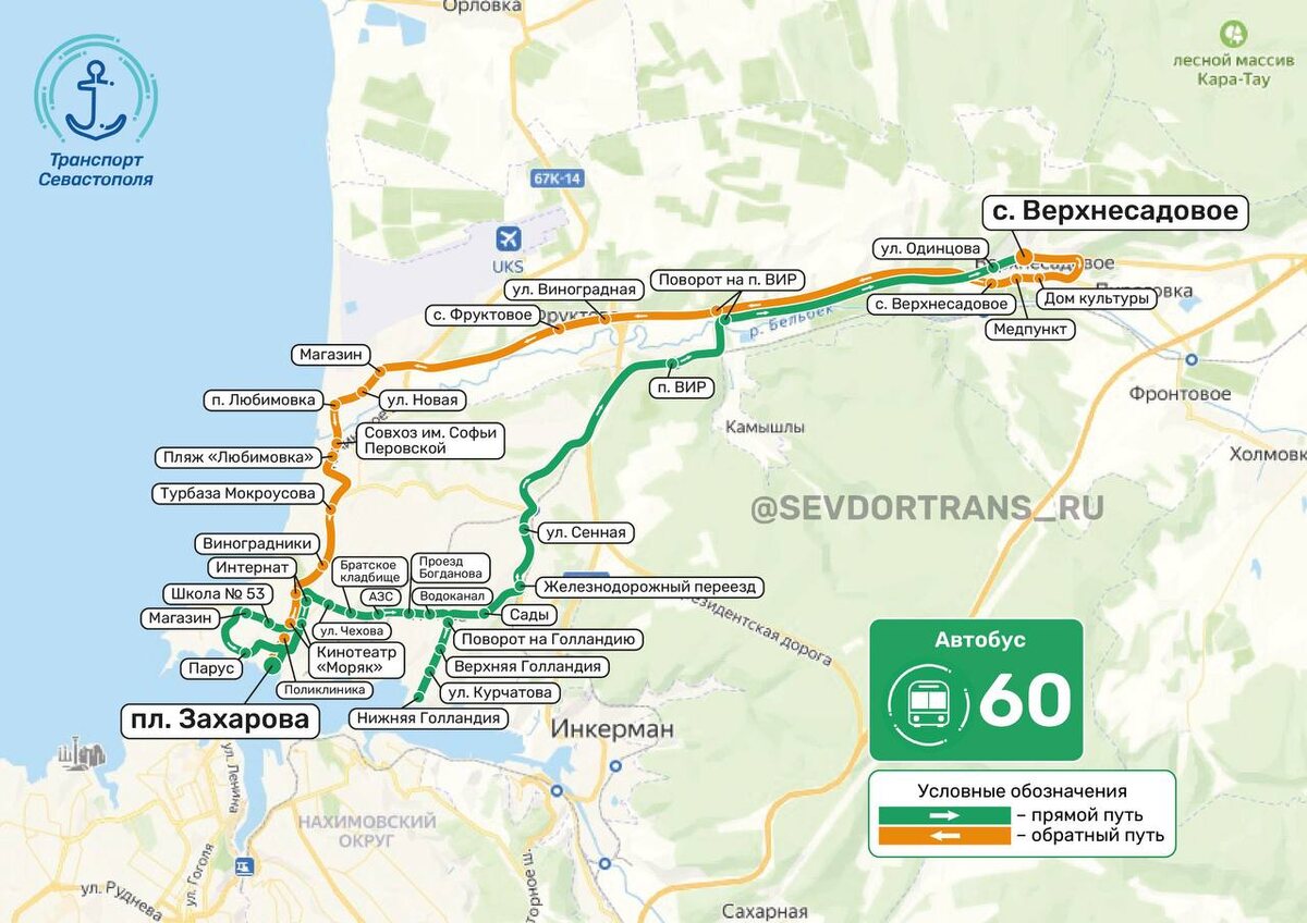 В летний сезон в Севастополе запустят два вечерних маршрута С 17 мая на Северной стороне начнут работать 2 маршрута общественного транспорта, сообщил Михаил Развожаев. 🔵№60 «пл. Захарова — Радиогорка — Голландия — с. Верхнесадовое» будет отправляться от площади Захарова в 22:00, из Верхнесадового — в 22:50; 🔵№80 «пл. Захарова — Радиогорка — Голландия — Любимовка» будет отправляться от площади Захарова в 23:40, из Любимовки — в 00:25; 📺 СТВ 24 | Подписаться