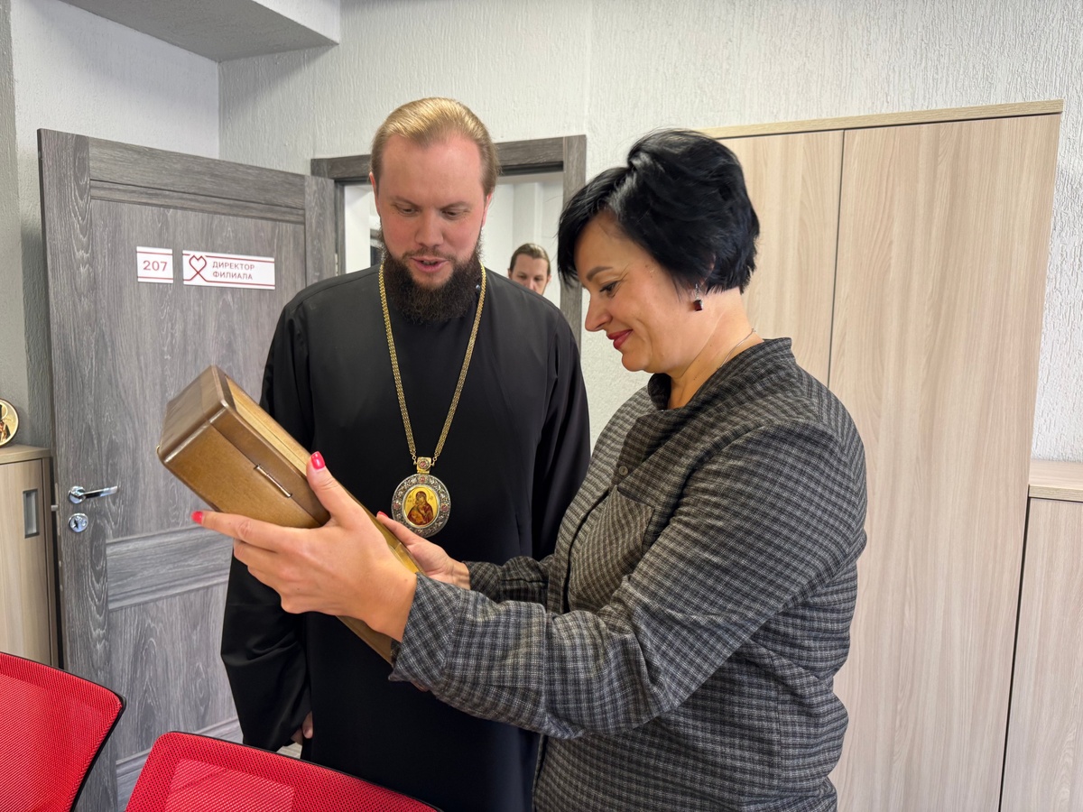 В начале встречи владыка Никандр преподнёс в дар Юлии Владимировне икону святителя Луки Крымского.