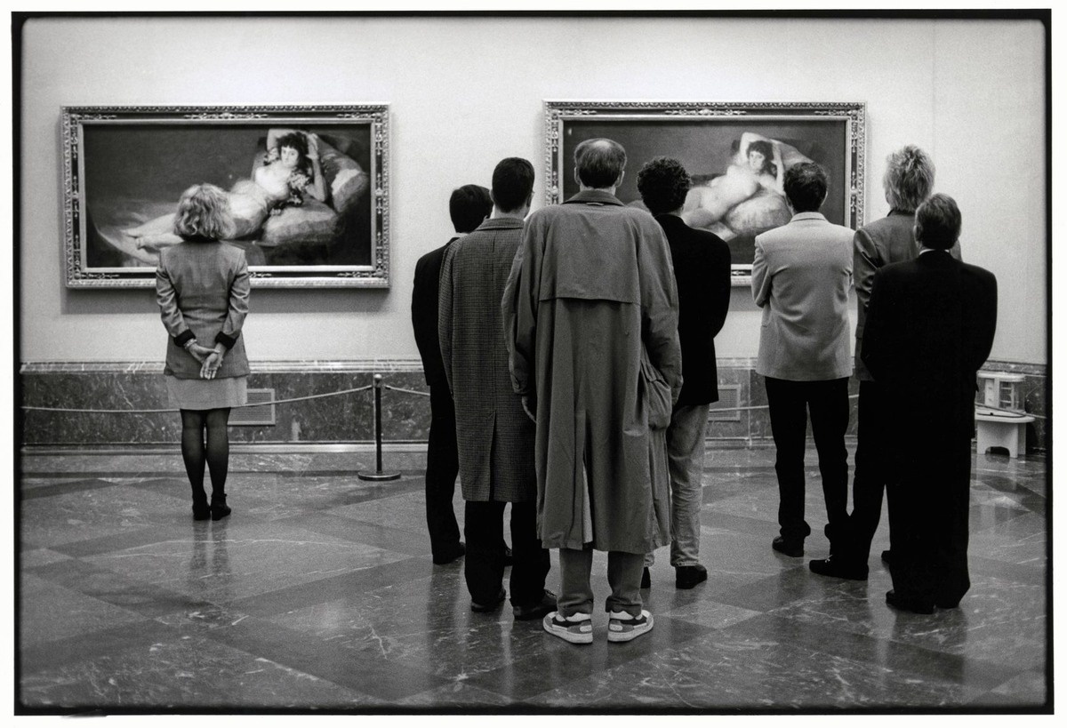Несколько посетителей музея стоят спиной к камере перед двумя большими картинами в рамах. На левой картине изображена женщина в пеньюаре ─ перед ней стоит одна единственная женщина зритель, на правой ─ похоже, та же самая женщина обнажена ─ перед ней сгрудились семь зрителей и все они мужчины. Ирония, вложенная автором, очевидна и не требует пояснений.