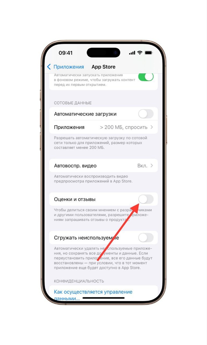 Как избавиться от назойливых просьб оценить приложения из App Store Бесит выскакивающий баннер с оценкой приложения? Есть способ убрать его полностью: Перейдите в «Настройки» —> «App Store» и отключите функцию «Оценки и отзывы». После этого постоянные напоминания о просьбе поставить рейтинг уйдут навсегда.