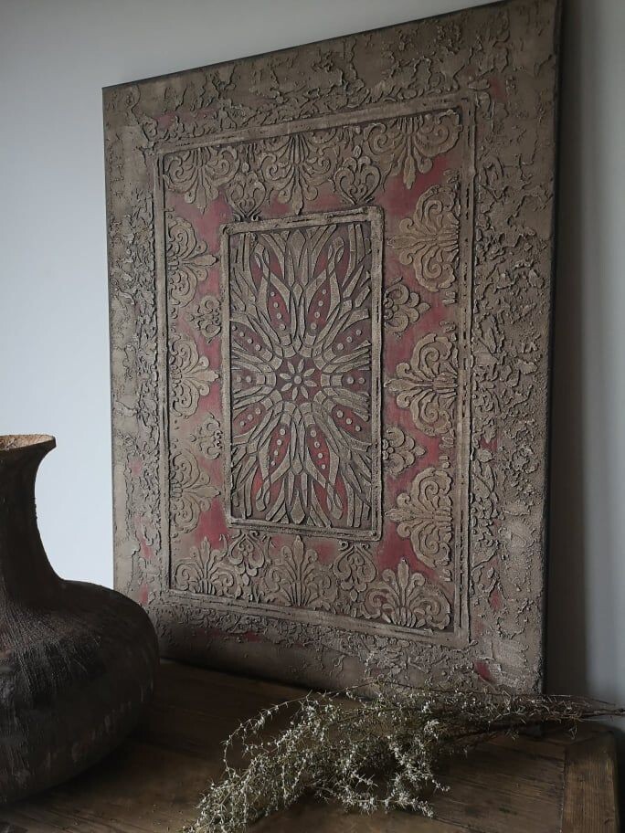 Хотите добавить интерьеру изюминку и глубину? Попробуйте объёмный декор с трафаретами! Это простой и эффектный способ преобразить любую поверхность: от стен и мебели до дверей и предметов декора. Что такое объёмный декор с трафаретами? Это техника, при которой через трафарет наносится не краска, а структурная паста или шпаклёвка. В результате рельефный узор становится настоящей «изюминкой» пространства: его хочется разглядывать и трогать! Как сделать эффект искусственного состаривания? Чтобы рельеф выглядел винтажно, используется патинирование и тонирование. После высыхания объёмного рисунка его слегка шлифуют, чтобы подчеркнуть выступающие части, а затем наносят на поверхность тёмную патину, воски или «сухую кисть» светлой краской. Такой подход создаёт эффект потертости, будто декор существует уже много лет и хранит множество историй. Зачем пробовать эту технику? - Можно создавать уникальные панно, изголовья кроватей, дверцы комода или кухни. - Визуально усложнить и «обогатить