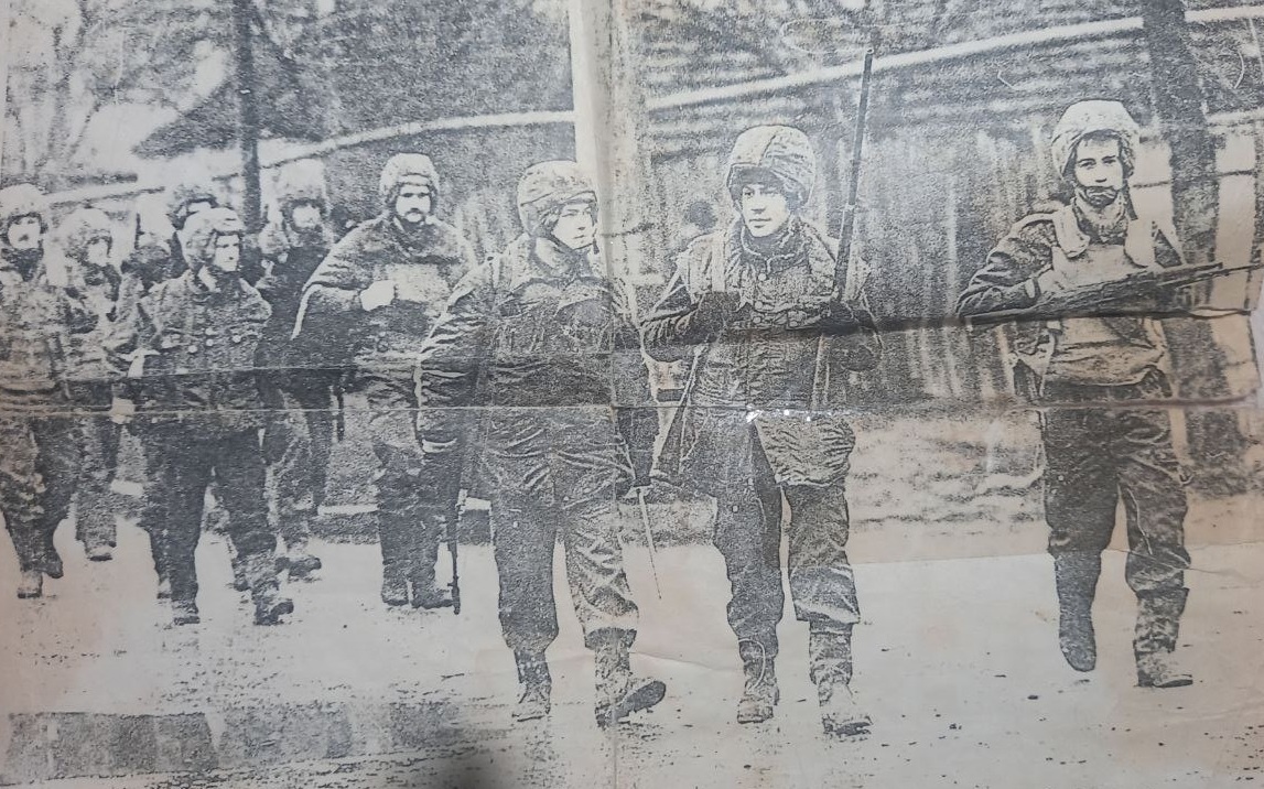 Грозный. Начало января 1995 года. Во всю идет штурм. Отряд ОМОН открытым строем марширует по частному сектору чеченской столицы. Причем будущий майор марширует почему-то с охотничьим ружьем, вместо гранатомета...
