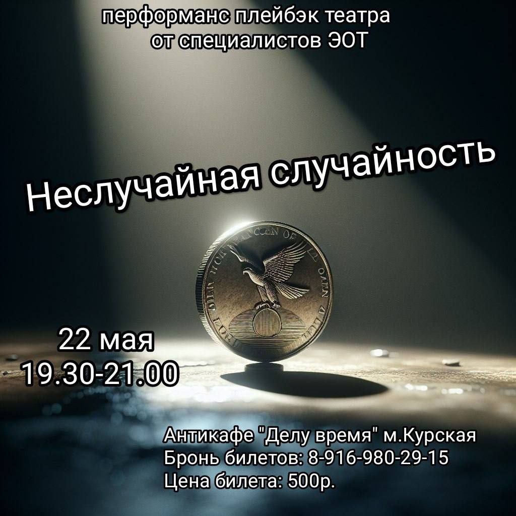 Иногда жизнь подкидывает нам «совпадения», которые меняют всё: — неожиданная встреча, — случайный разговор, — маршрут, который привёл тебя туда, где нужно было оказаться. Возможно, это не хаос, а тихий шёпот вселенной: Ты именно там, где должен быть! С вами такое случалось? Вы сможете увидеть свою историю на нашей сцене, пробудить свои чувства через истории других участников в атмосфере принятия и зарядиться энергией после трудового дня. Все истории актеры сыграют без предварительной подготовки, в состоянии « здесь и сейчас». Чистая импровизация, без репетиций и разучивания ролей. Ждем вас 22 мая в 19.30 в антикафе «Делу время» Стоимость:500р. Адрес:Нижний Сусальный пер.,5, стр.10 Бронирование: т.8-916-980-29-15 ( Телеграмм,Вотсап) Количество мест ограничено! Навигатор при бронировании билета